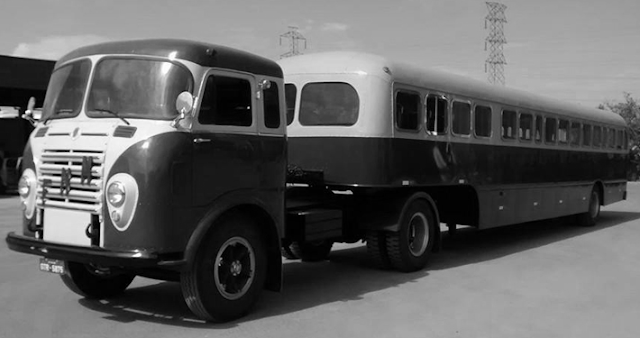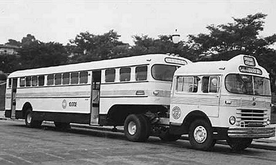Famoso "Papa Fila" da CMTC, que nada mais era do que uma carreta produzida pela FNM (Fábrica Nacional de Motores) para transportar passageiros.