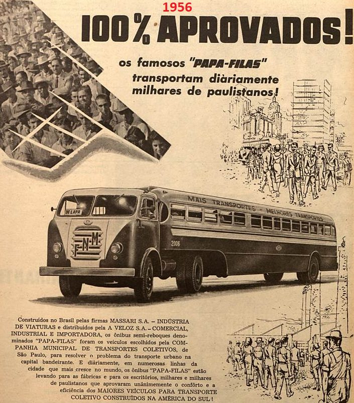 Foram criadas numerosas linhas, e, diariamente, os ônibus papa-filas levavam para as fábricas e para os escritórios, milhares e milhares de paulistanos que, na época, diziam aprovar o conforto e a eficiência do que foi chamado de “maiores veículos para transporte coletivo construídos na América do Sul” (conforme anúncio da empresa Massari, a fabricante dos veículos, que você pode ver ao final da matéria).