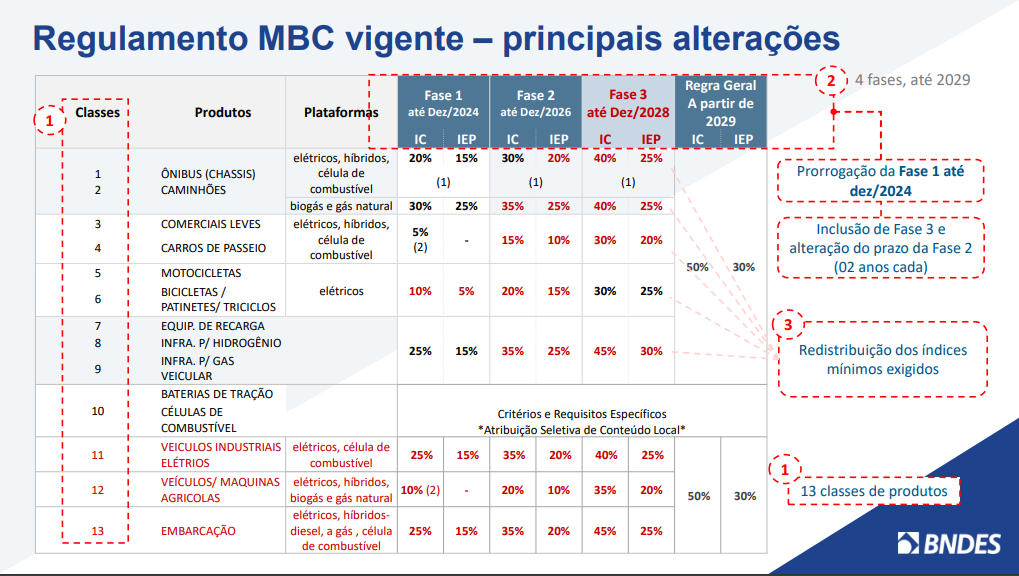 No setor de mobilidade, onde se encaixa o mercado automotivo e de transportes, as atualizações no sistema vão permitir o financiamento de caminhões elétricos, híbridos ou outros modelos com tração elétrica; Veículos para logística industrial, máquinas agrícolas, caminhões movidos exclusivamente a biocombustível e veículos pesados a gás e respectivos equipamentos de abastecimento, além de outras máquinas e equipamentos.