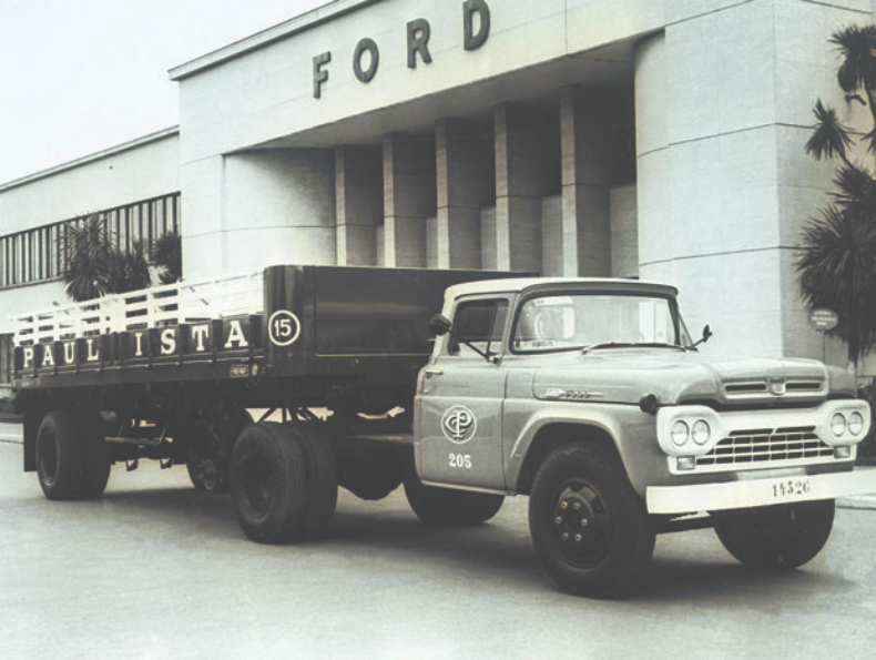 Lançado em 26 de agosto de 1957, o Ford F‑600 foi o primeiro caminhão Ford nacional. Produzido na fábrica do Ipiranga (SP), ele trouxe 40% de nacionalização, com motor V8 a gasolina de 4,5 L e 161 cv, e capacidade de carga de até 6,5 toneladas. Esse Fordão marcou uma nova era: se popularizou principalmente porque foi muito usado durante a construção de Brasília, puxando cargas de São Paulo até o centro do Brasil, onde estava sendo erguida a futura capital do país.