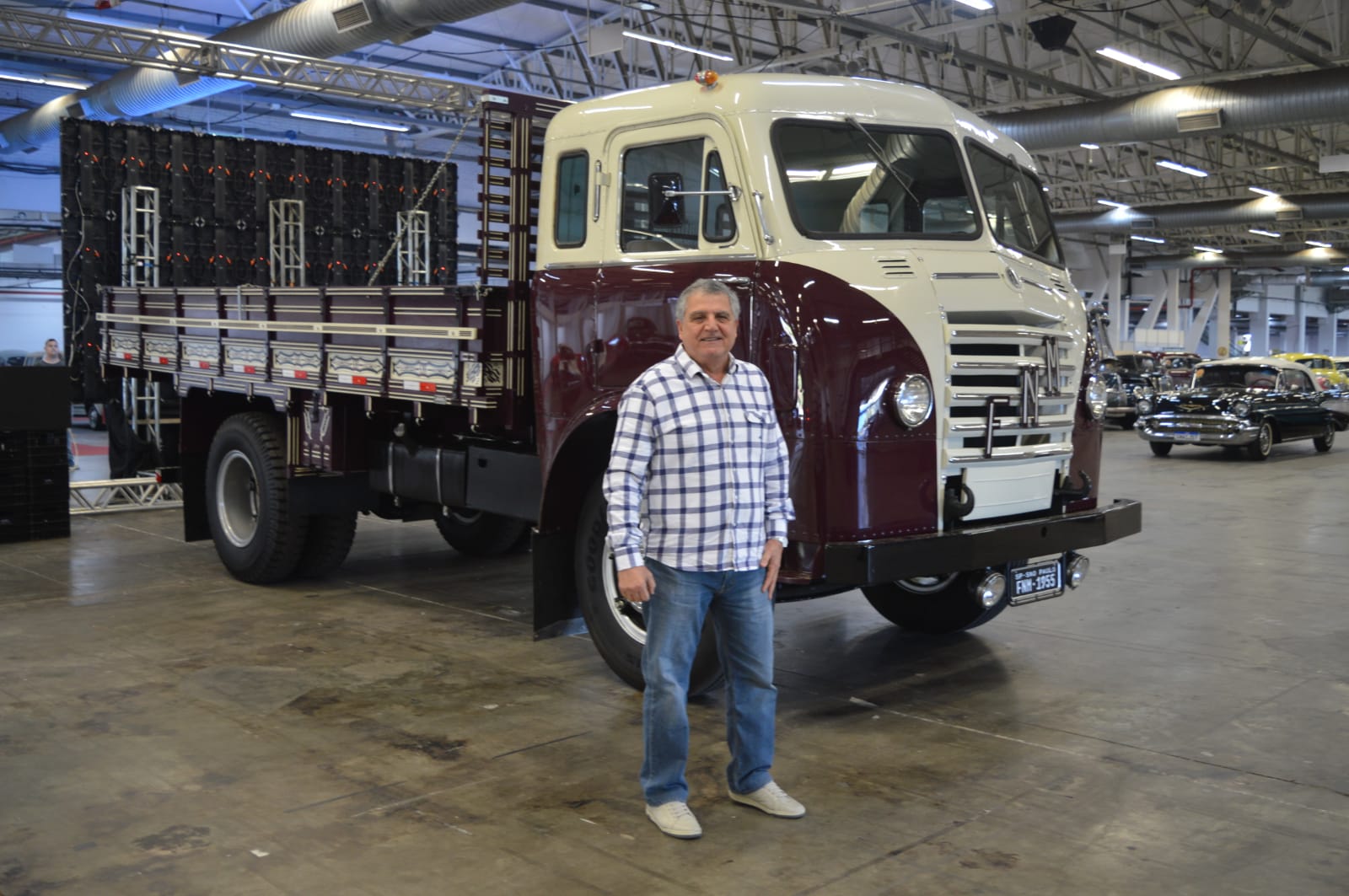 Caminhões FNM ocupam a ilha principal