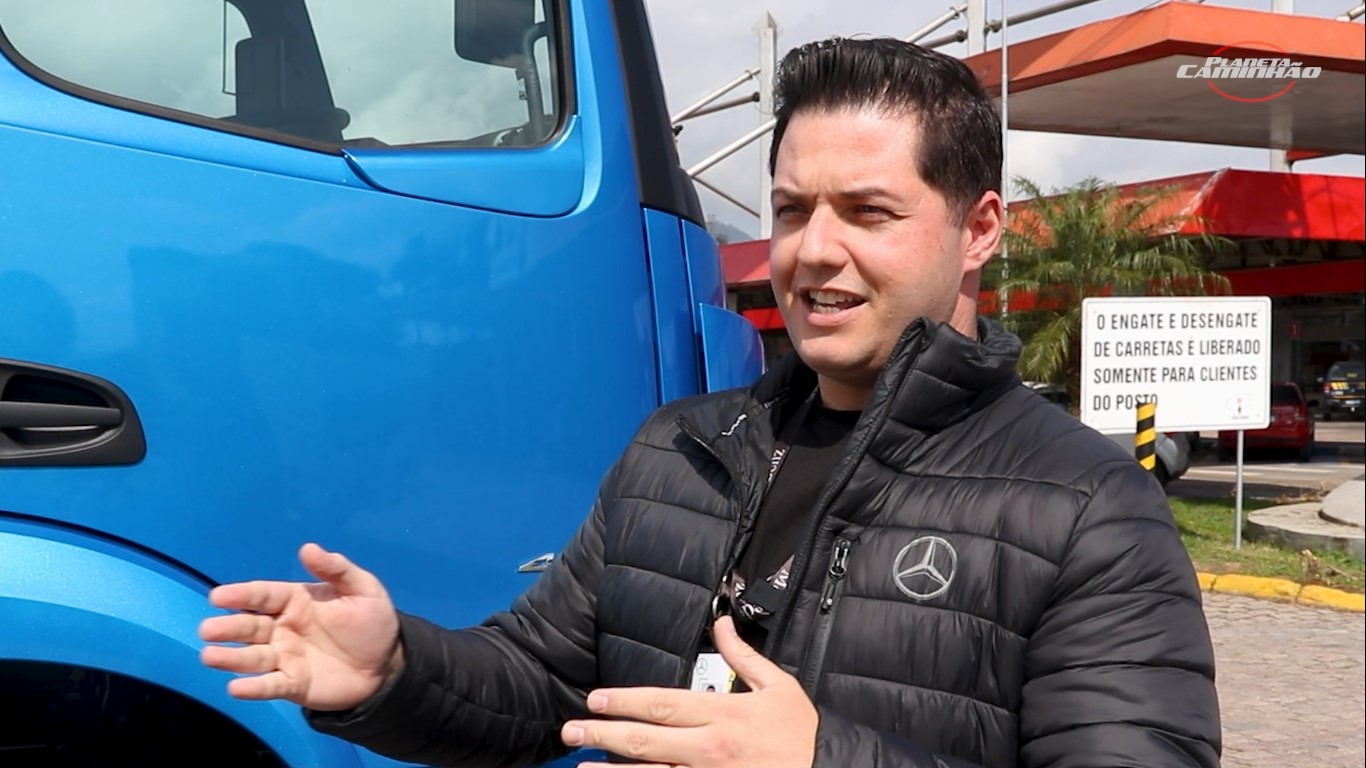 Guilherme Rossi, Analista de Marketing de Produtos Mercedes-Benz, que nos deu detalhes sobre a estratégia adotada pela Mercedes-Benz para fortalecer o produto no mercado brasileiro. Foto: Planeta Caminhão