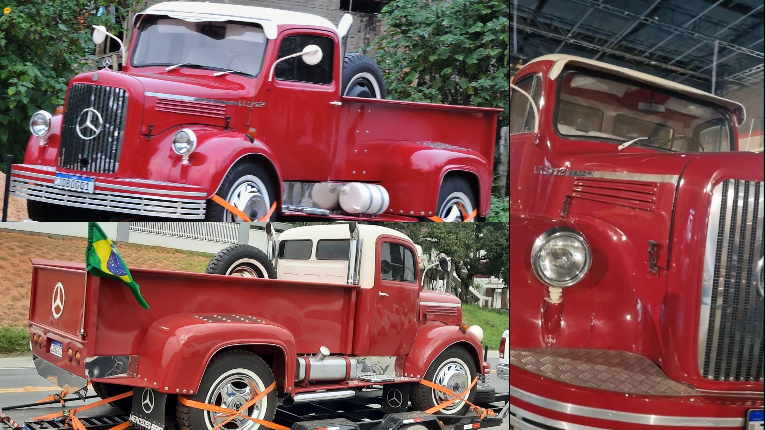 MERCEDES BENZ/LK 312 1958 Exposto na última Feira do Cegonheiro - Expo de Transporte ABCD em São Bernardo do Campo. Foto: Página Grupo Caminhões Antigos e Atuais (Facebook)