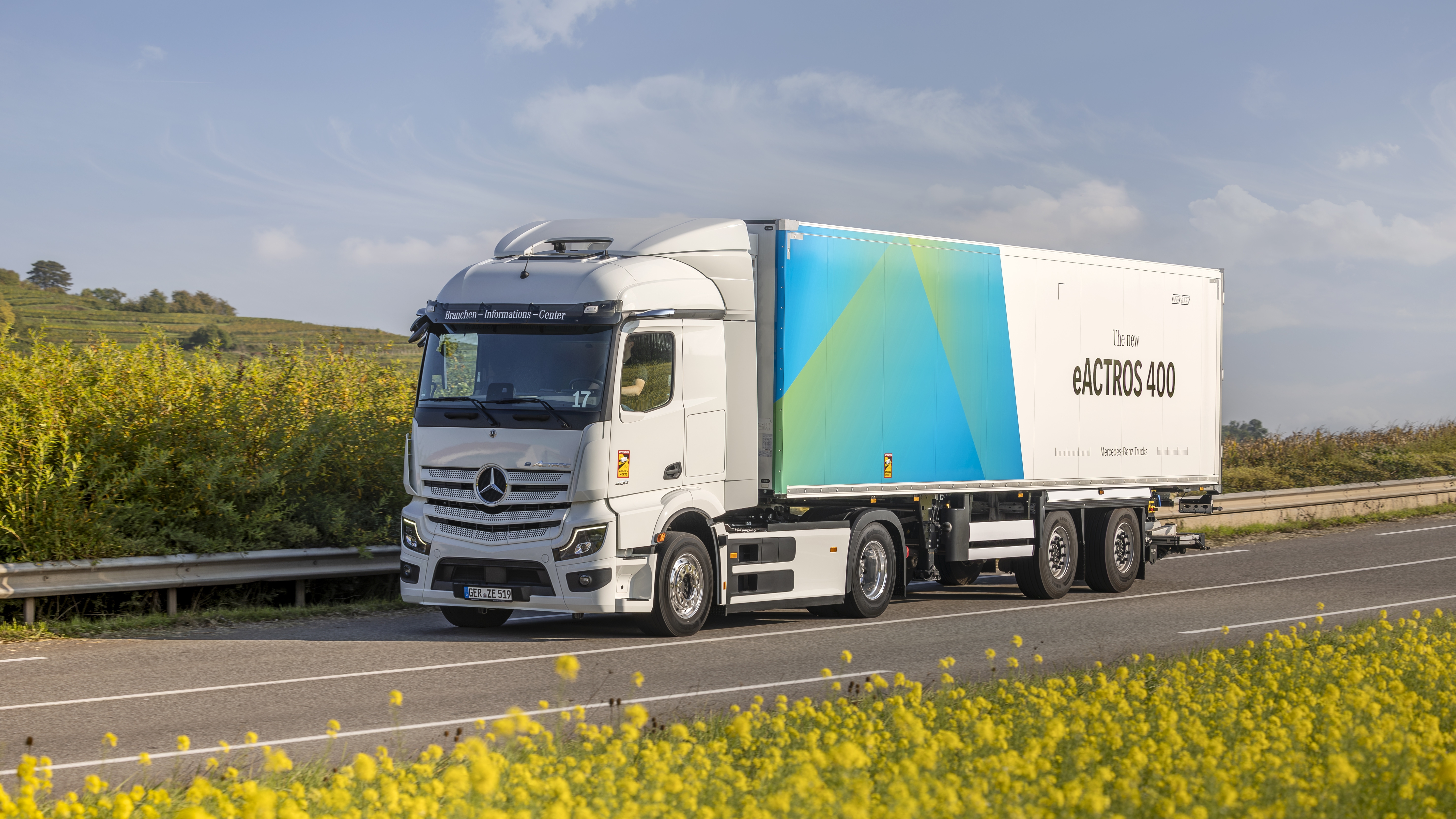 Como novidade, por exemplo, a marca oferece o eActros 400 na versão cavalo mecânico 4x2 para operação com semirreboque, com distância entre eixos de 3.700 mm. Graças a esse entre eixos mais curto, o veículo tem um raio de giro menor, facilitando as manobras, mesmo em espaços apertados, como ruas ou depósitos estreitos. Outras novidades para o eActros 400 são o chassi de plataforma 4x2 com distâncias entre eixos de 4.000, 5.500, 5.800 e 6.100 mm, bem como o chassi de plataforma 6x2 com seis distâncias entre eixos, que vão de 4.000 e 5.800 mm. Estas variantes estão disponíveis com ProCabin ou com a consagrada cabina L.