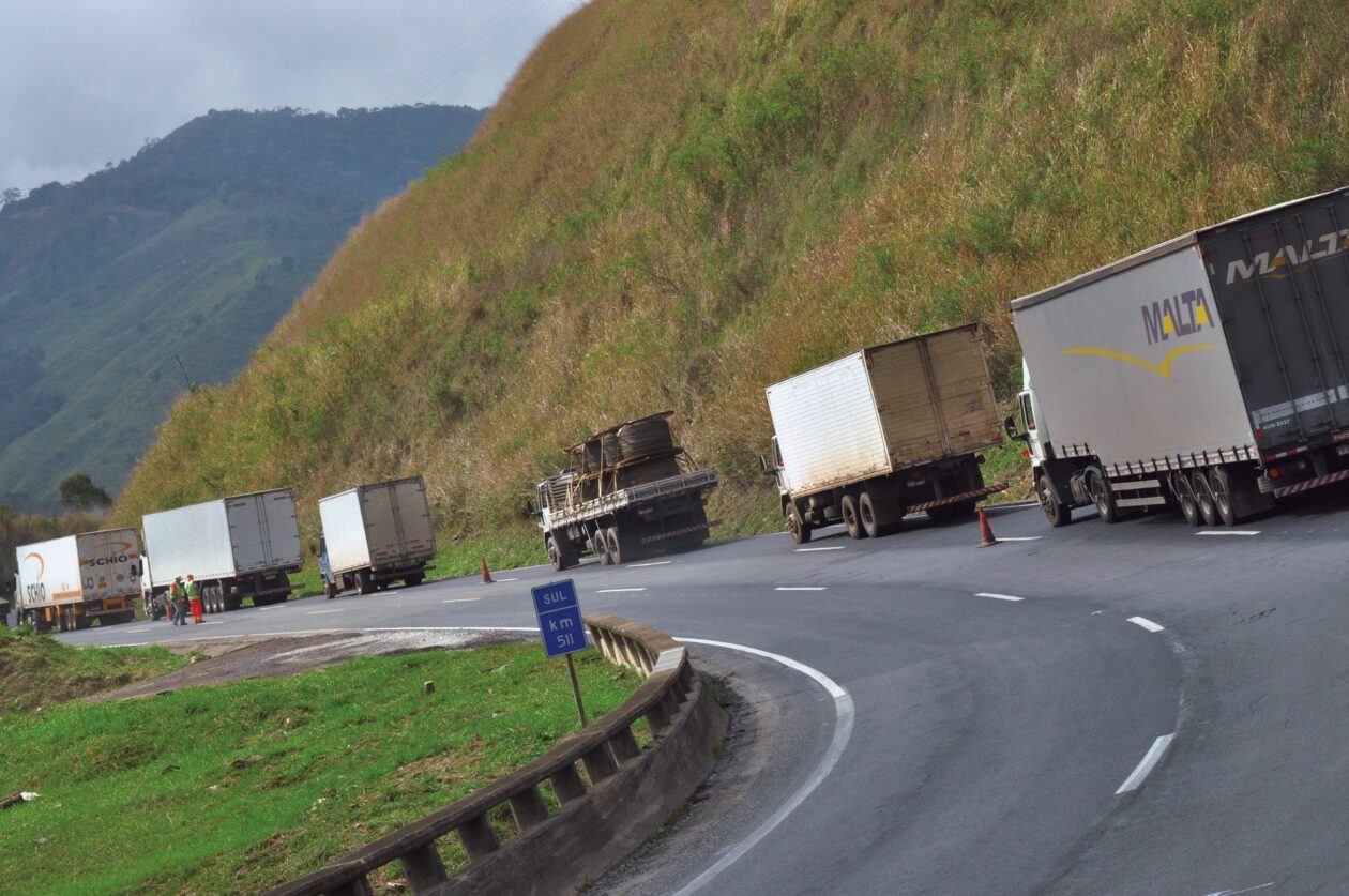 Caminhões parados aguardando fluxo da BR-116 com destino ao Sul