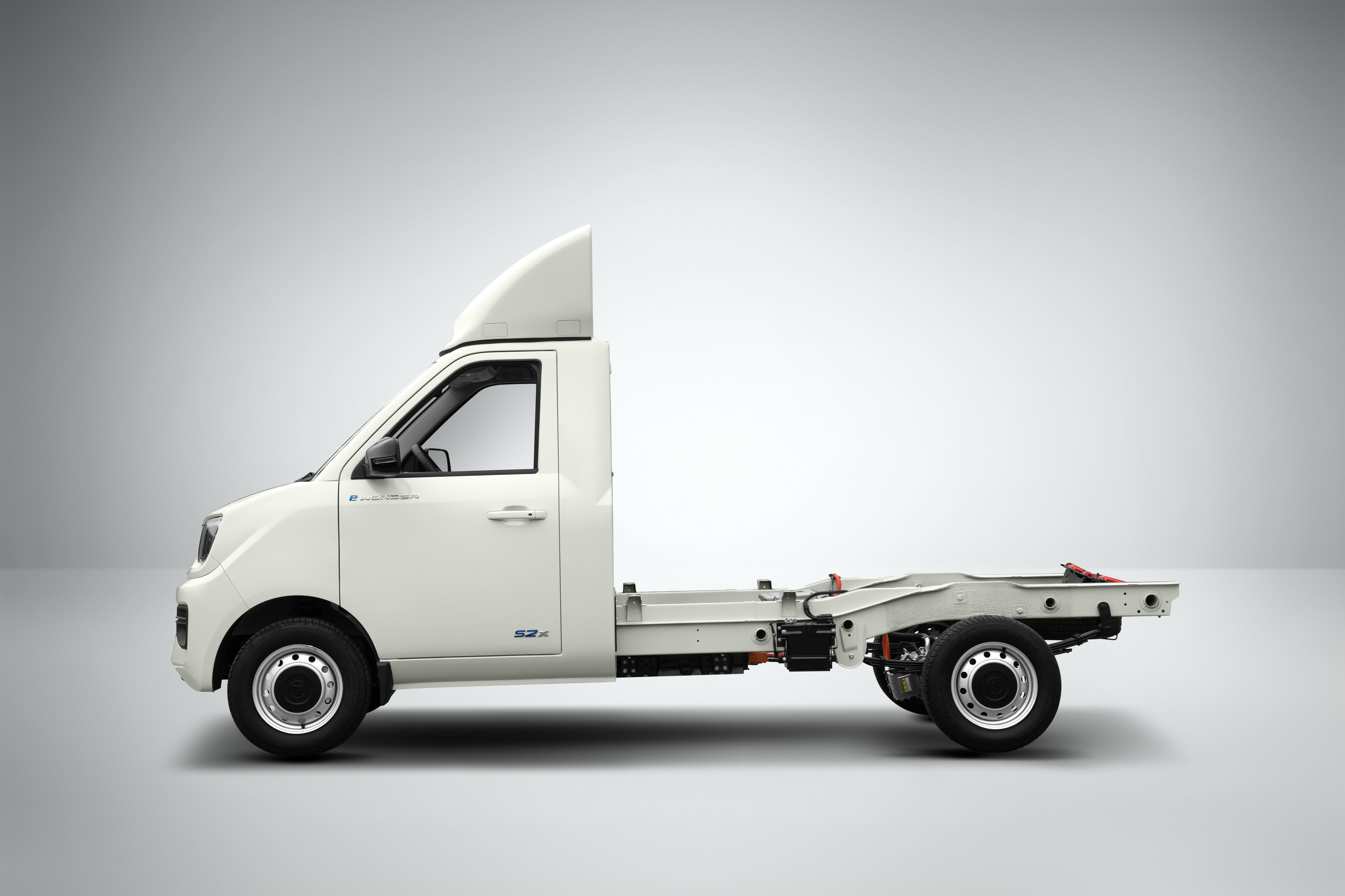 Compacto e eficiente, o utilitário elétrico possui PBT de 2.550 kg e dimensões ideais para circulação em ruas estreitas: são 4.620 mm de comprimento, 1.710 mm de largura e 1.900 mm de altura. A direção elétrica facilita manobras frequentes, enquanto a suspensão dianteira independente garante conforto nas operações de entrega. Já o feixe de molas na traseira assegura robustez mesmo em uso contínuo com carga.