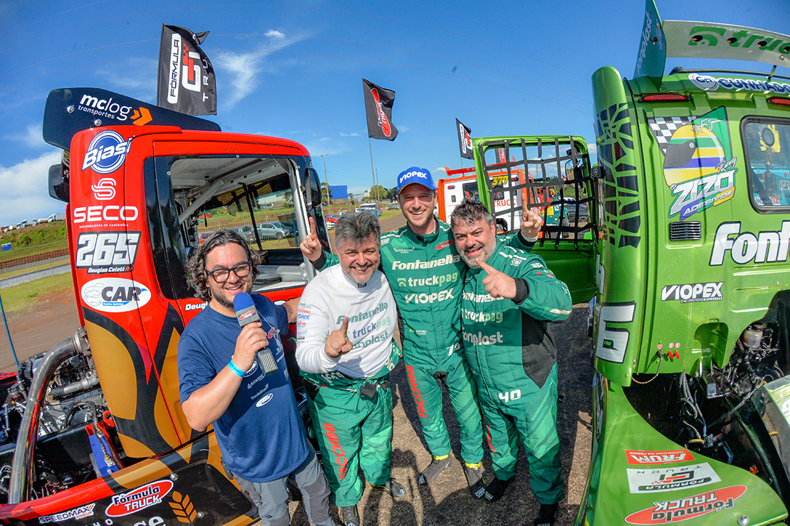 Ramiris Fontanella (5º), Rafael Fleck (pole position) e Everton Fontanella (2º) é o poderio da equipe Fontanella no grid da final da Fórmula Truck. Fotos: Tiago Soares/Divulgação