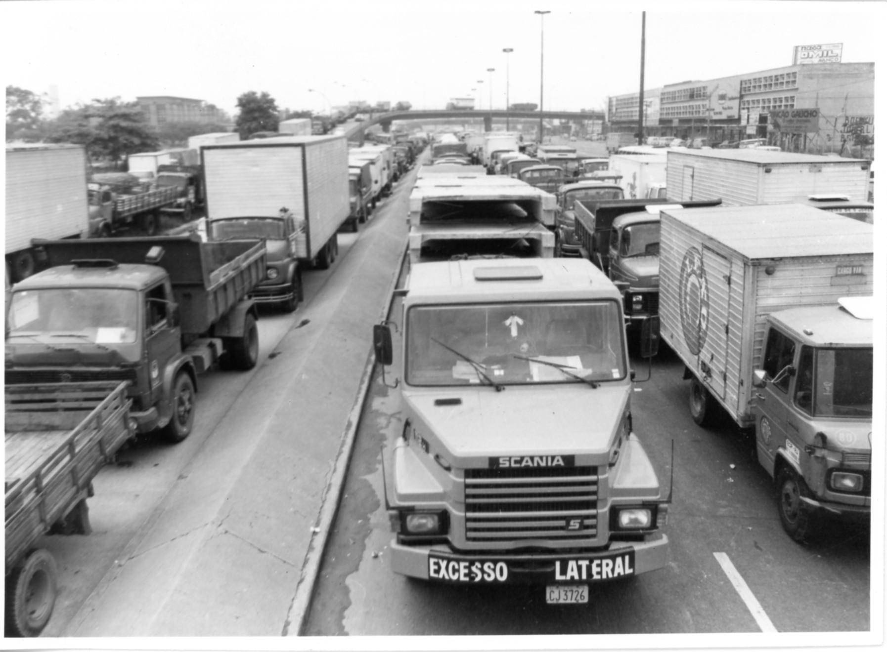 Fundação Memória do Transporte conta com acervo digital que ilustra o desenvolvimento dos caminhos, trilhos e vias que construíram a metrópole - Foto: Braço mecânico acionado no Scania T 112, alcança 30 metros de altura, no centro de São Paulo - SP, próximo ao Tribunal de Justiça de São Paulo - SP e da Catedral Metropolitana de São Paulo ou Catedral da Sé - Divulgação: FuMTran