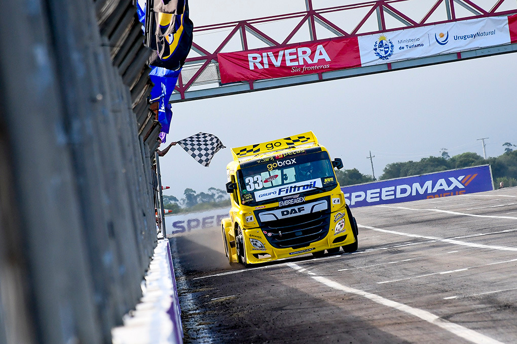 A programação da 3ª etapa da Fórmula Truck em Rivera, no Uruguai, se encerrou com a disputa do Troféu SpeedMax na tarde deste domingo (12). A prova no Autódromo Eduardo Prudêncio Cabrera foi cheia de nuances, que fizeram com que a competição passasse a ter dois novos líderes. Na categoria F-Truck (motores com bomba injetora), a vitória foi do gaúcho Paulo Giacomelli, que completou 17 voltas. Em segundo, a 10s910 do ganhador, chegou o paranaense Natanael Limestone, se classificando à frente de Peterson Agrodoviski (PR), Clayton Lopes (RS), Ricardo Ançay (PR) e Daril Amaral (SP), que pela ordem, ocuparam as seis primeiras posições da prova e foram ao pódio da categoria F-Truck em Rivera.