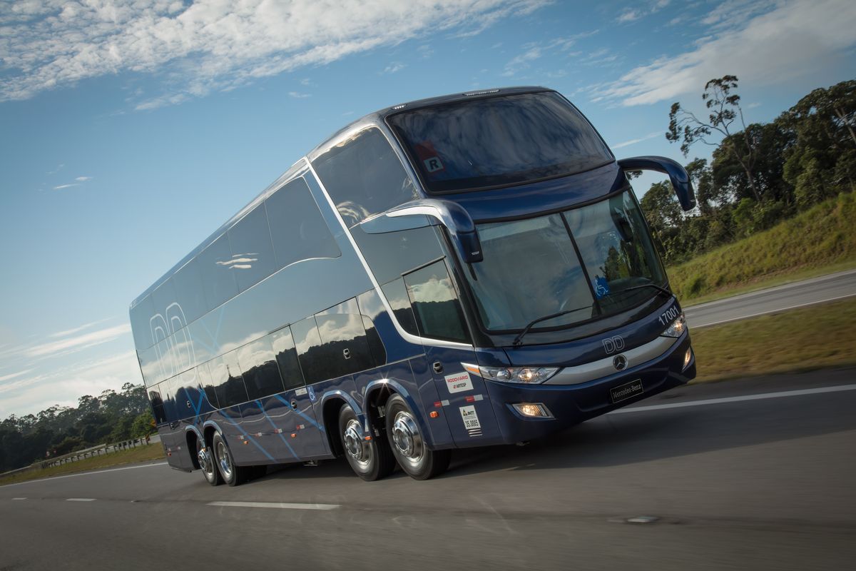 A segurança nos modelos pesados deu um salto. Itens que antes eram opcionais, como o piloto automático adaptativo (ACC) e o sensor de chuva, agora são padrão. Isso posiciona os chassis da Mercedes-Benz como alguns dos mais seguros do mercado brasileiro, atendendo desde carrocerias convencionais até as imponentes Double Decker.