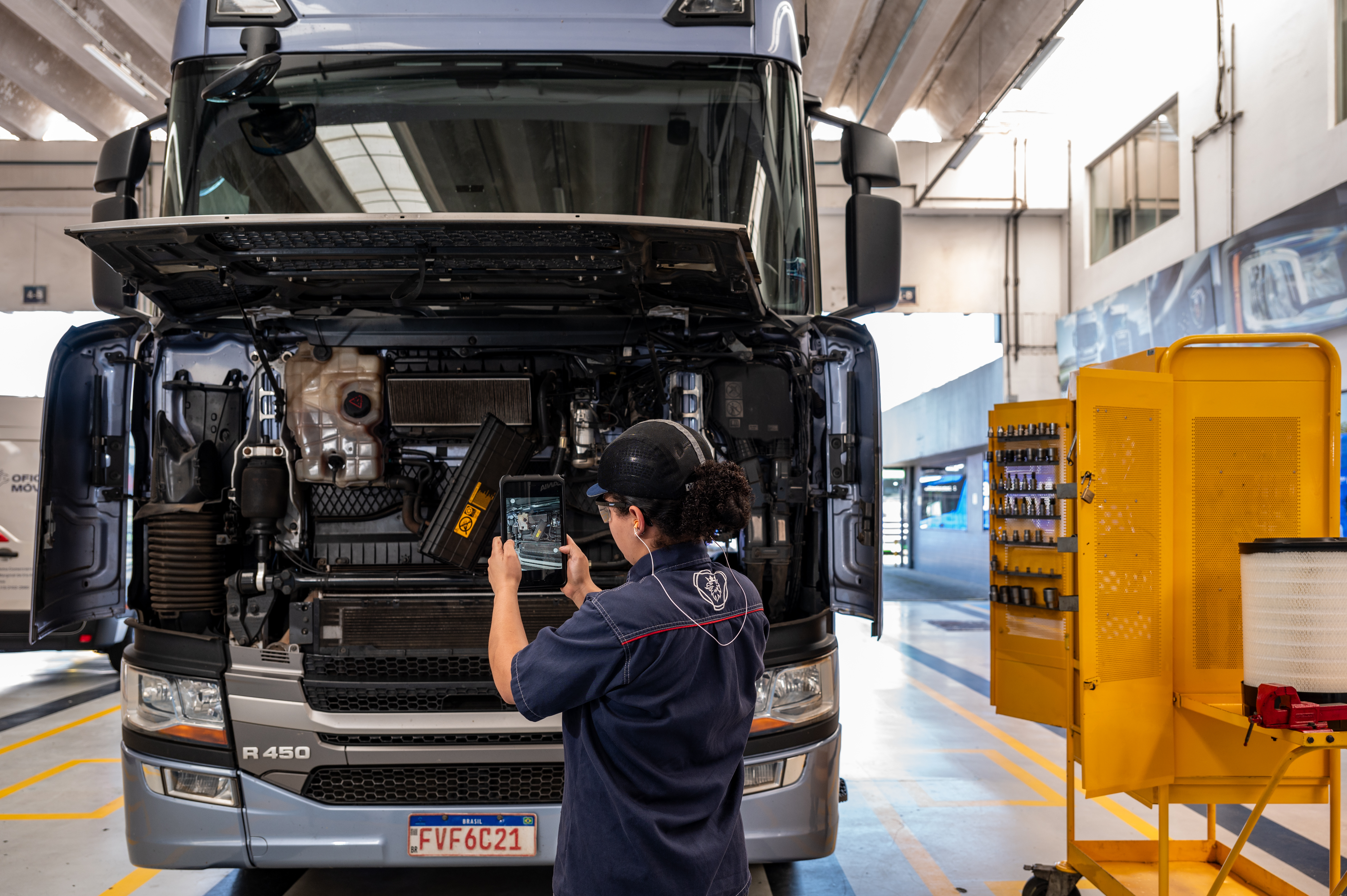 A Scania também está de olho no futuro profissional. Com 500 vagas abertas na rede e 95 mil horas de treinamento previstas para 2025, a empresa reforça que o investimento em pessoas é o que garante a qualidade da execução dos serviços nas oficinas. No portal My Scania, o cliente centraliza tudo. Desde o agendamento digital de serviços até o controle de localização e alertas de falhas. É o fim da papelada e o início de uma gestão baseada em dados reais e precisos.
